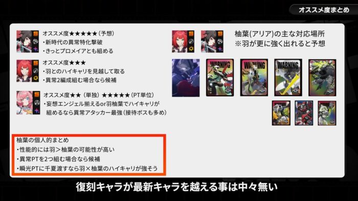 - 復刻柚葉は羽アリアと比べておススメなのか